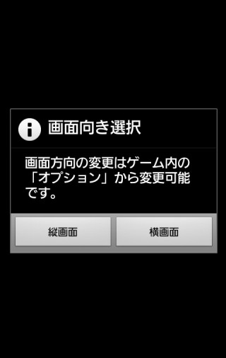 初回起動時のみ縦横画面の選択があり、その後の起動は全て選択した画面の向きとなります。